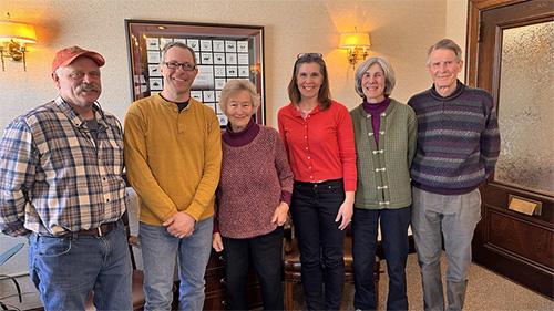Left to right: Jamie Robertson (Five Rivers Board Chair), Jeff Evans (Five Rivers Director of Conservation), Susan Englund, Liz Short (Five Rivers Executive Director), Margaret Watkins (Dunbarton Conservation Commission), and Rob Knight (Five Rivers Project Manager)